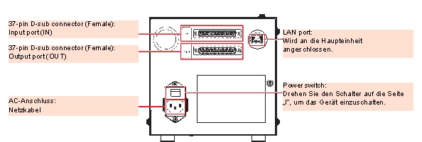 - Eingangs-/Ausgangskabel sind nicht im Lieferumfang enthalten. Bereiten Sie das Kabel gemäß den Gerätespezifikationen des Kunden vor. Der Eingangs-/Ausgangsanschluss (37-poliger D-Sub-Stecker) verwendet eine Klemmschraube (Hirosugi DSB-7048DE Klemmabschnitt: M2,6).